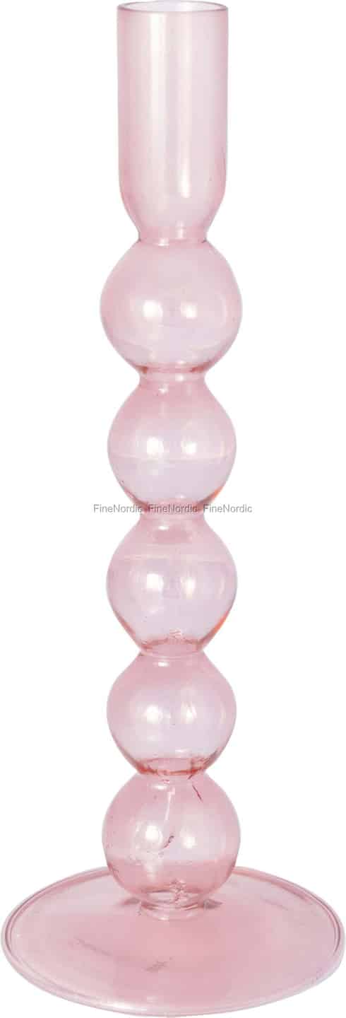 Entdecken Sie einen Kerzenhalter, der ebenso eine Skulptur wie eine Quelle sanften Lichts ist. Dieses Stück der renommierten dänischen Marke GreenGate zelebriert die schlichte Schönheit von Form und Farbe. Sein Stiel, eine verspielte Kaskade aus fünf perfekt abgerundeten Glaskugeln, erhebt sich von einem stabilen, runden Fuß zu einem klassischen zylindrischen Aufsatz. Das durchscheinende, in einem zarten Altrosa getönte Glas fängt das Licht wunderschön ein und wird garantiert zum Gesprächsthema in Ihrem Zuhause.
