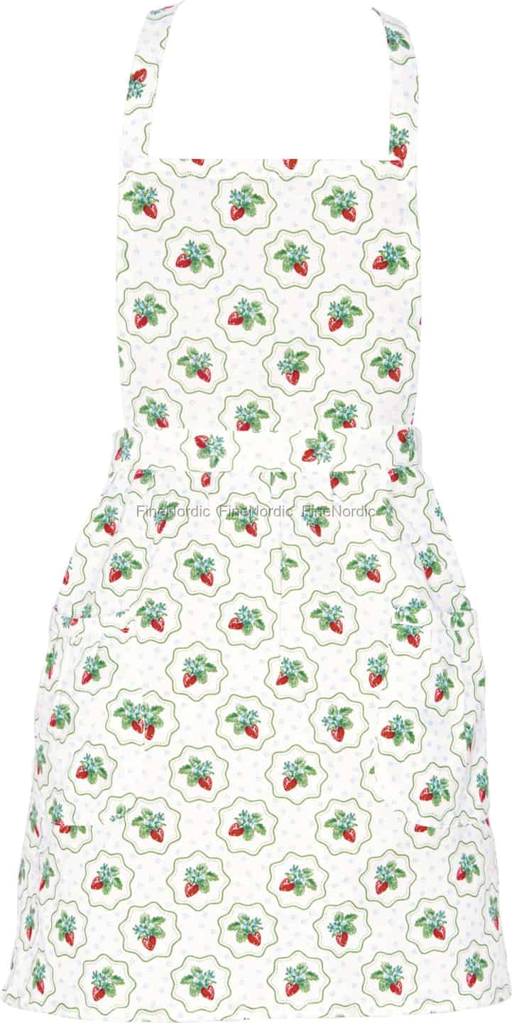 Ermutigen Sie die kreative Ader Ihres Kindes mit der Schürze Berry Petit White von GreenGate. Dieses Stück ist mehr als nur eine Schutzschicht; es ist eine Einladung, gemeinsame Erinnerungen zu schaffen, sei es beim Backen von Erdbeerkuchen, bei der Pflege von Gartensetzlingen oder beim Malen eines Meisterwerks. Die strahlend weiße Baumwolle ist mit einem nostalgischen Muster aus süßen roten Erdbeeren und winzigen blauen Blüten verziert, wobei jede kleine Vignette von frischem Grün umrahmt ist, was das Gefühl eines sonnenverwöhnten skandinavischen Sommertages hervorruft.