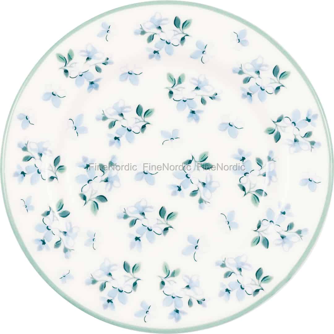 Lassen Sie sich vom kleinen Teller Alaia White von GreenGate in einen friedlichen skandinavischen Garten entführen. Jede hellblaue Blume ist mit einem sanften, malerischen Pinselstrich gestaltet, der ein Gefühl von leichter Bewegung auf der glatten Keramikoberfläche erzeugt. Dies ist nicht nur ein Teller; es ist eine kleine Leinwand, die die stille Freude einer blühenden Wiese einfängt. Der dezente salbeigrüne Rand sorgt für den perfekten Abschluss und erdet das Design mit einem erdigen, natürlichen Ton, der sich sowohl frisch als auch vertraut anfühlt.