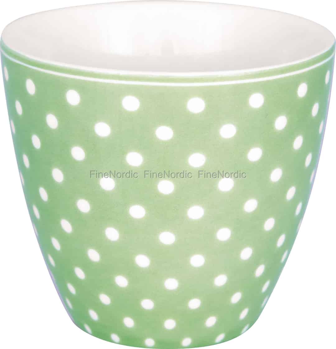 Stell dir vor, wie deine Hände diesen wunderbar glatten Becher umschließen, seine sanfte Wärme dich zu Beginn eines neuen Tages erdet. Das fröhliche Tupfenmuster in einem zarten, blassen Grün verleiht deinem Lieblingsgetränk einen Hauch von Frühlingsoptimismus.