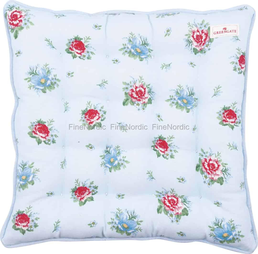 Machen Sie es sich im sanften Komfort eines Sommertages mit dem Sitzkissen Alivia Pale Blue von GreenGate gemütlich. Sein bezaubernder Blumendruck auf weicher, himmelblauer Baumwolle lädt dazu ein, bei Ihrem Morgenkaffee ein wenig länger zu verweilen.
