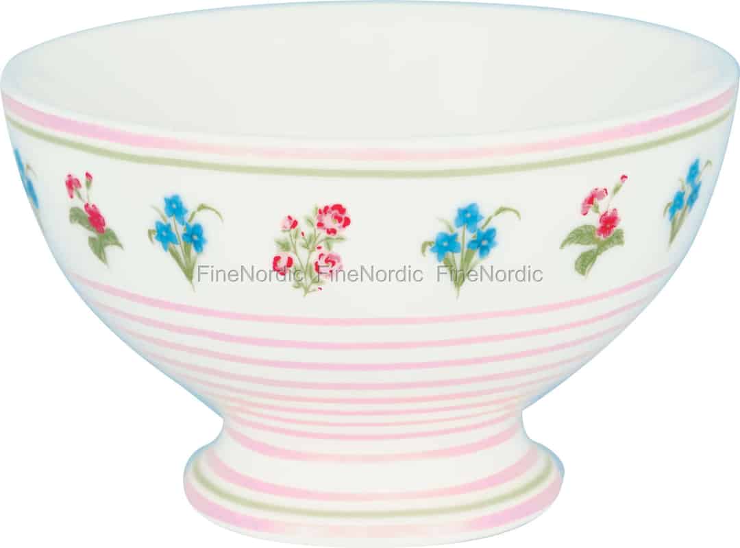 Die Kollektion Liana White von GreenGate ist eine Liebeserklärung an die schlichte Schönheit eines dänischen Sommergartens. Diese bezaubernde Snackschale kombiniert zwei klassische Muster: süße, bonbonfarbene Streifen, die Erinnerungen an Ferien am Meer wecken, und ein zartes Band aus Wildblumen in sanften Rosa-, Blau- und Salbeigrüntönen. Die elegante Silhouette auf dem Standfuß verleiht ihr einen edlen Charakter und macht selbst den einfachsten Snack zu einem besonderen Anlass. Sie liegt wunderbar in der Hand, ihre glänzende Keramik fühlt sich glatt und angenehm an.