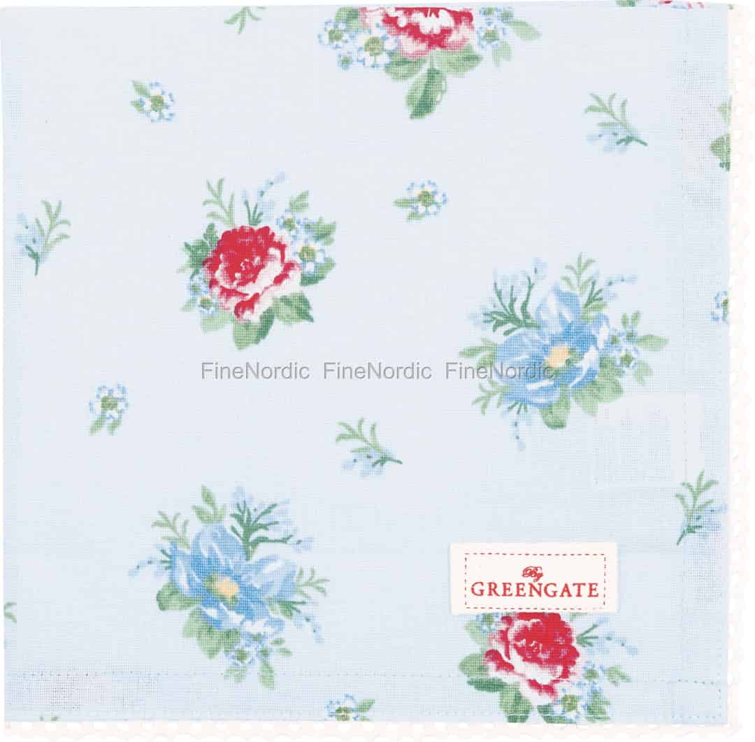 Stellen Sie sich einen sonnenverwöhnten Nachmittag und einen für den Tee gedeckten Tisch vor. Die Serviette Alivia Pale Blue erweckt diese idyllische Szene zum Leben, mit ihrem weichen Baumwollgefühl und einem entzückenden Blumendruck, der an einen blühenden Bauerngarten erinnert.