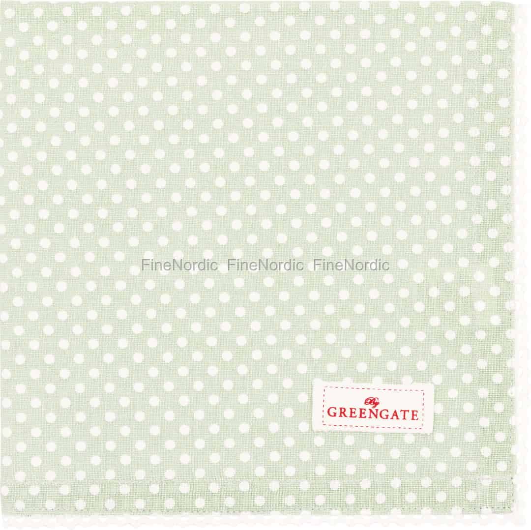 Stellen Sie sich einen sonnendurchfluteten Küchentisch vor, gedeckt für einen ruhigen Morgenkaffee oder einen fröhlichen Brunch mit Freunden. Diese reizende Stoffserviette von GreenGate, mit ihrem sanften, blassgrünen Farbton und den klassischen weißen Punkten, erweckt genau dieses einfache, freudige Gefühl zum Leben.