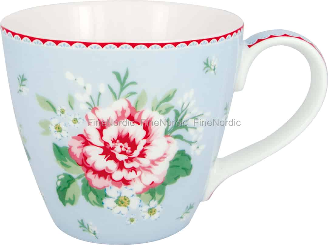 Stellen Sie sich vor, wie Sie eine warme Tasse in den Händen halten und dem Morgen beim Erwachen zusehen. Die Tasse Alivia Pale Blue von GreenGate fängt diese schlichte Freude ein, mit ihrem zarten Blumenmuster auf einem heiteren, himmelblauen Hintergrund. Sie ist eine Einladung, innezuhalten und den Augenblick zu genießen.