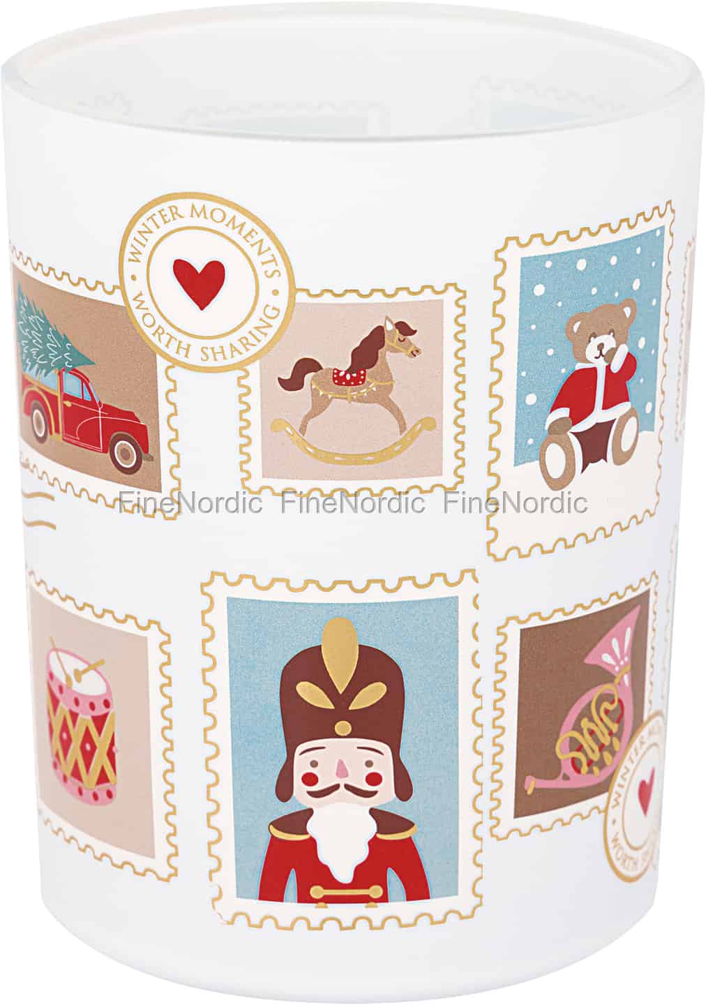 Erinnern Sie sich an die Magie, Weihnachtspost zu erhalten? Die Kollektion Xmas Letter von GreenGate fängt genau diese herzliche Nostalgie ein. Dieser liebevolle Teelichthalter ist wie eine Sammlung kostbarer Postkarten aus vergangenen Weihnachtstagen, wobei jede Briefmarke eine kleine, fröhliche Geschichte erzählt. Die Milchglasoberfläche bietet die perfekte Leinwand für die detailreichen Illustrationen von Schaukelpferden und Spielzeugsoldaten, alle in einer sanften, zeitlosen Farbpalette gehalten. Die Botschaft „Winter Moments Worth Sharing“ dient als sanfte Erinnerung daran, worum es in dieser Jahreszeit wirklich geht.