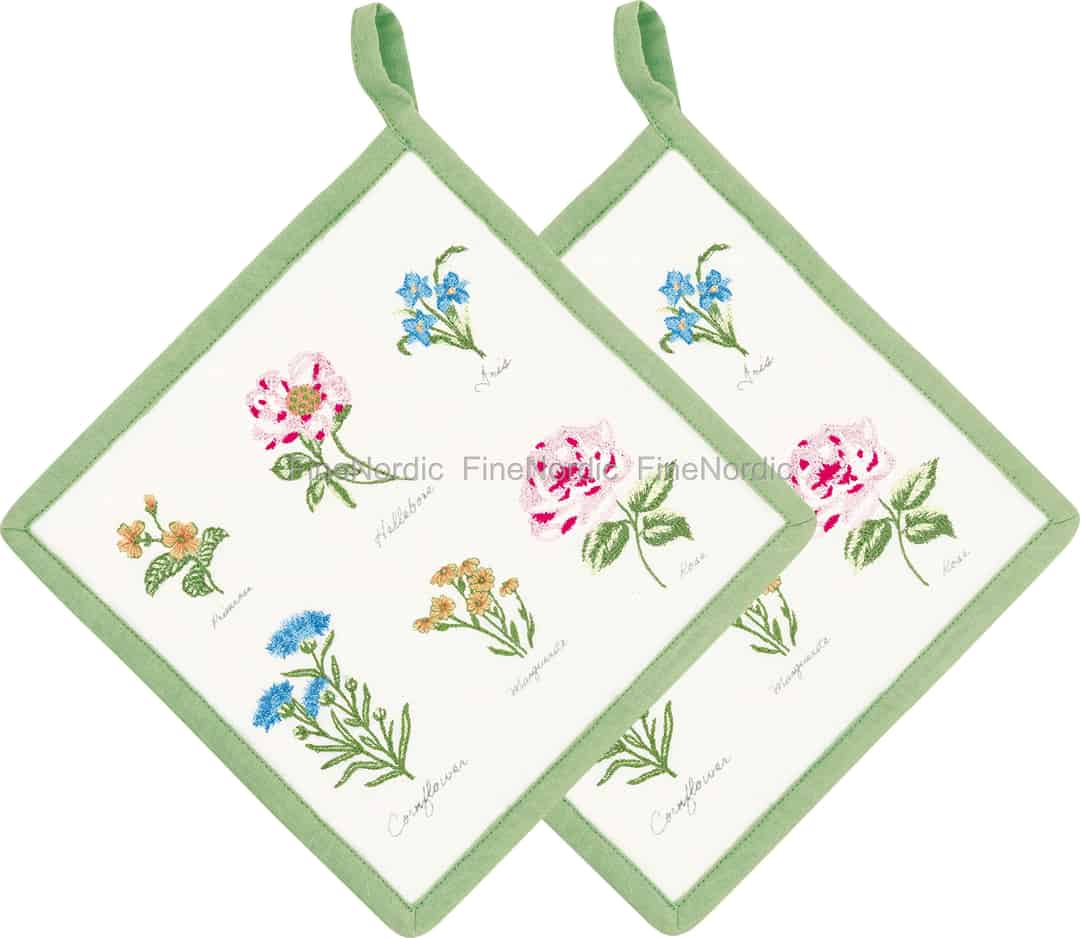 - Exquisite botanische Details: Jeder Topflappen ist mit wunderschön gestickten Blumen verziert, von Rosen bis zu Kornblumen, ergänzt durch ihre Namen in eleganter Schrift. Das verwandelt einen einfachen Küchenhelfer in ein kleines Kunstwerk, an dem Sie sich täglich erfreuen können.