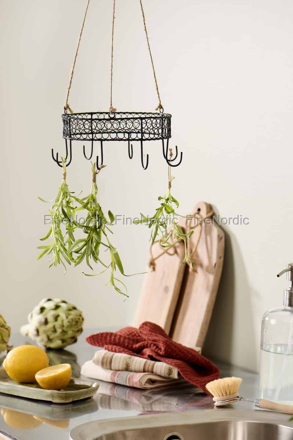 Stellen Sie sich vor, wie Bündel frischer Kräuter sanft von Ihrer Decke trocknen und ihr Duft die Luft erfüllt. Dieser bezaubernde Hängekranz von Ib Laursen bringt dieses einfache Vergnügen in Ihr Zuhause und verbindet praktische Aufbewahrung mit einem wunderbar authentischen Gefühl.