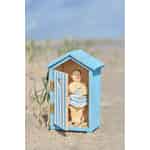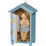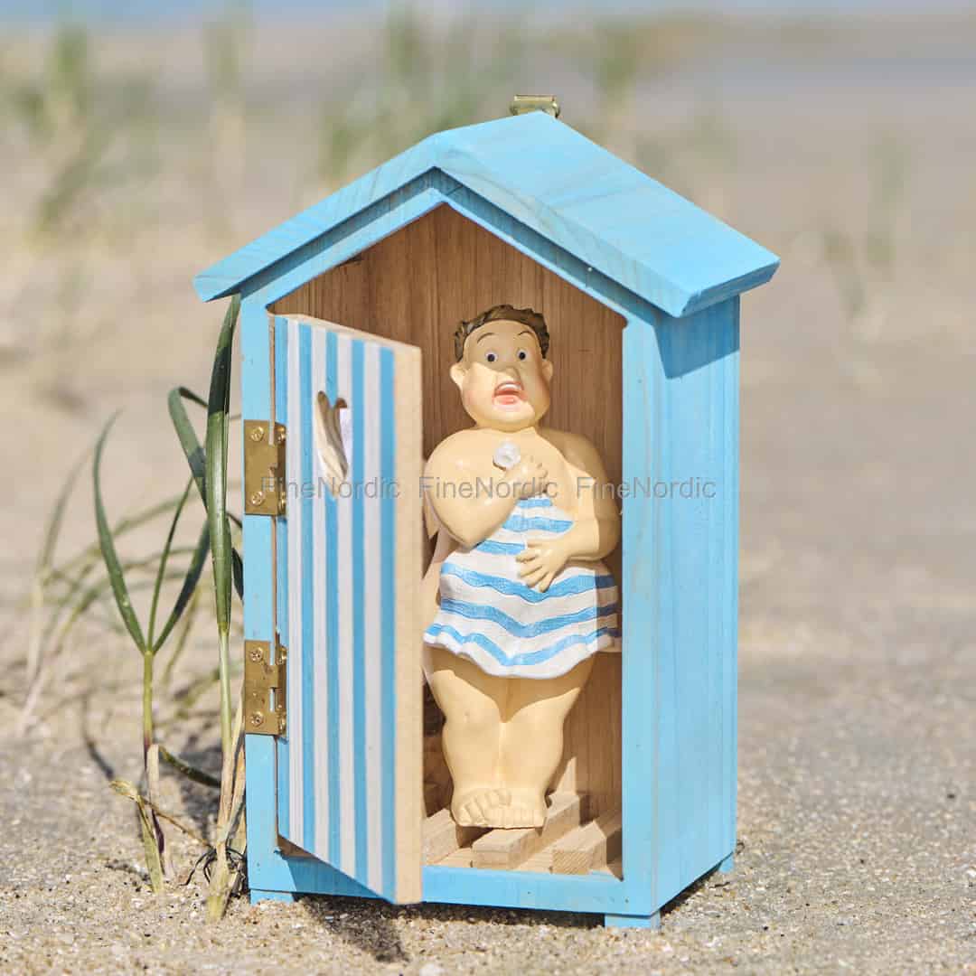 Machen Sie eine Zeitreise zu einem klassischen Urlaub am Meer, wo das Rufen der Möwen die Luft erfüllt und bunte Badehäuser das Ufer säumen. Diese wundervolle Figur von Ib Laursen fängt einen leisen, humorvollen Moment eines genau solchen Tages ein. Wenn Sie durch die offene Tür des kleinen blauen Häuschens spähen, entdecken Sie einen überraschten Gentleman, der sofort ein Lächeln hervorruft. Es ist eine Hommage an jene einfachen, freudigen Erinnerungen am Meer, gefertigt mit dem authentischen Charme, für den Ib Laursen bekannt ist.