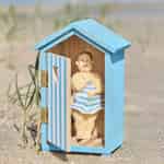 - Authentische Küstendetails: Von der blau-weiß gestreiften Tür mit ihrem niedlichen Herzausschnitt bis zum winzigen Handtuch im Inneren ist jedes Detail darauf ausgelegt, den schlichten Charme eines Küstenortes zu wecken.
