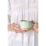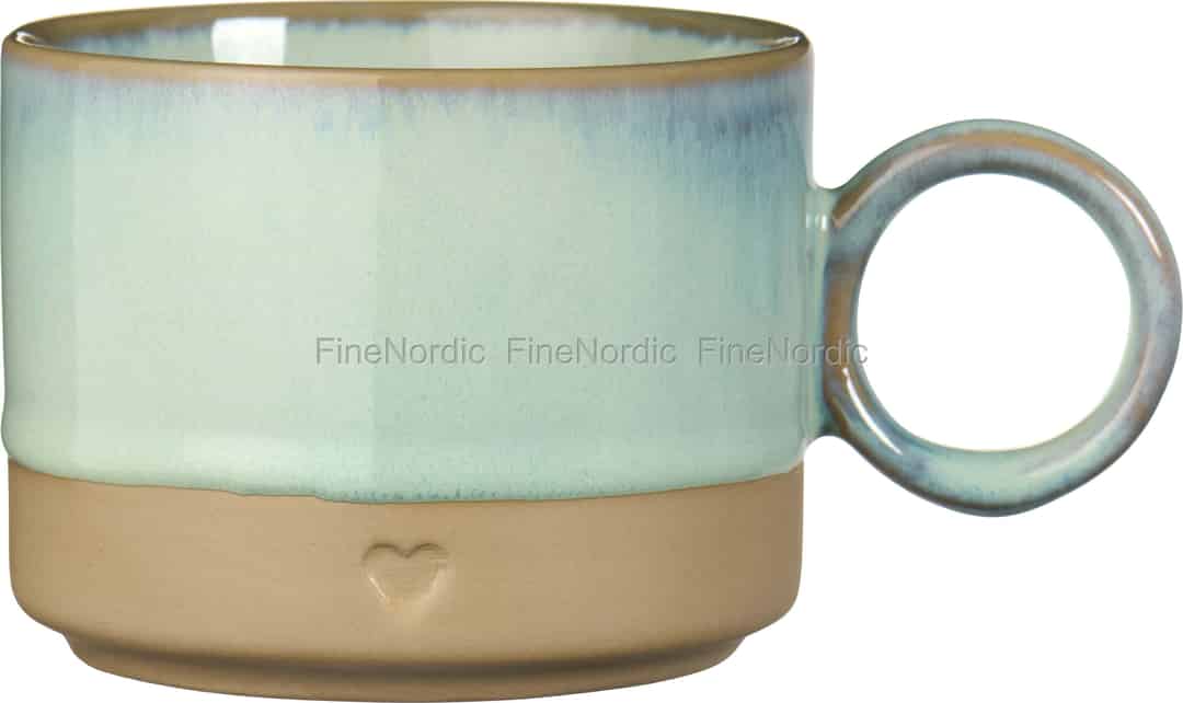 Von der renommierten dänischen Marke Ib Laursen ist dieser Becher eine Hommage an die schlichte, alltägliche Schönheit. Das Design verbindet auf durchdachte Weise zwei unterschiedliche Texturen: eine kühle, glatte Keramikglasur in einem beruhigenden Hellgrün und einen unglasierten, erdigen Boden, der sich wunderbar erdend anfühlt. Die Magie liegt in den Details – der reaktiven Glasur, die am Rand verläuft und einzigartige Farbmuster erzeugt, und dem dezent geprägten Herzen, das als sanfte Erinnerung dient, den Moment zu genießen.