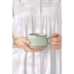 Mit seinem bequemen runden Henkel und einer Form, die perfekt in Ihre Hände passt, ist dieser Becher für die ruhigen Momente Ihres Tages geschaffen. Ob Sie Ihren Morgen mit einem frisch gebrühten Kaffee beginnen oder den Tag mit einem Kräutertee ausklingen lassen, er verwandelt eine einfache Routine in ein geschätztes Ritual. Er ist ein Stück alltäglicher Handwerkskunst, das einen Hauch skandinavischer Wärme und Authentizität direkt auf Ihren Küchentisch bringt.