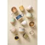 Stellen Sie sich vor, wie Sie an einem ruhigen Morgen Ihre Hände um diesen bezaubernden Becher legen und seine Wärme spüren. Die sonnengelbe Glasur bringt eine fröhliche Note in Ihren Tag und verspricht mit jedem Schluck einen Moment schlichter, herzlicher Freude.