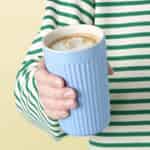 Stellen Sie sich vor, wie Ihre Hände diesen wunderschön gefertigten Becher umschließen, gefüllt mit einem warmen, schaumigen Latte. Die charakteristische Rillenstruktur der Mynte-Kollektion und der sanfte Farbton „Blue Bell“ bringen einen Hauch von dänischem Landhauscharme in Ihr tägliches Kaffeeritual.