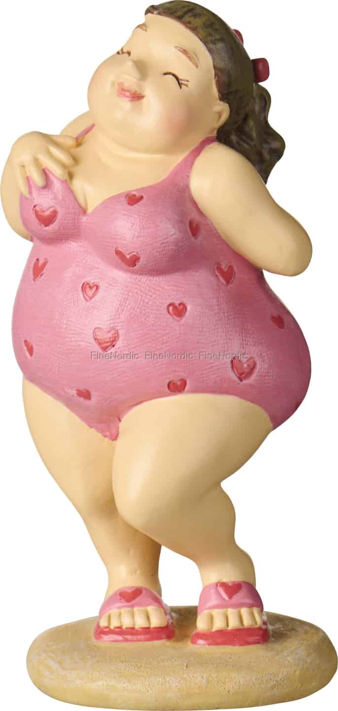 Gefertigt aus Polyresin mit einer reizvollen, fühlbaren Oberfläche, steht diese dekorative Dame stolz auf ihrem sandfarbenen, strukturierten Sockel. Platzieren Sie sie in Ihrem Badezimmer, um eine fröhliche, maritime Atmosphäre zu schaffen, oder lassen Sie sie einen Sonnenstrahl auf Ihr Lieblingsbücherregal bringen. Sie ist nicht nur eine Dekoration; sie ist ein Charakter voller Wärme und Persönlichkeit, der Sie einlädt, ein Stück dieser unbeschwerten Urlaubsstimmung zu genießen, egal zu welcher Jahreszeit.