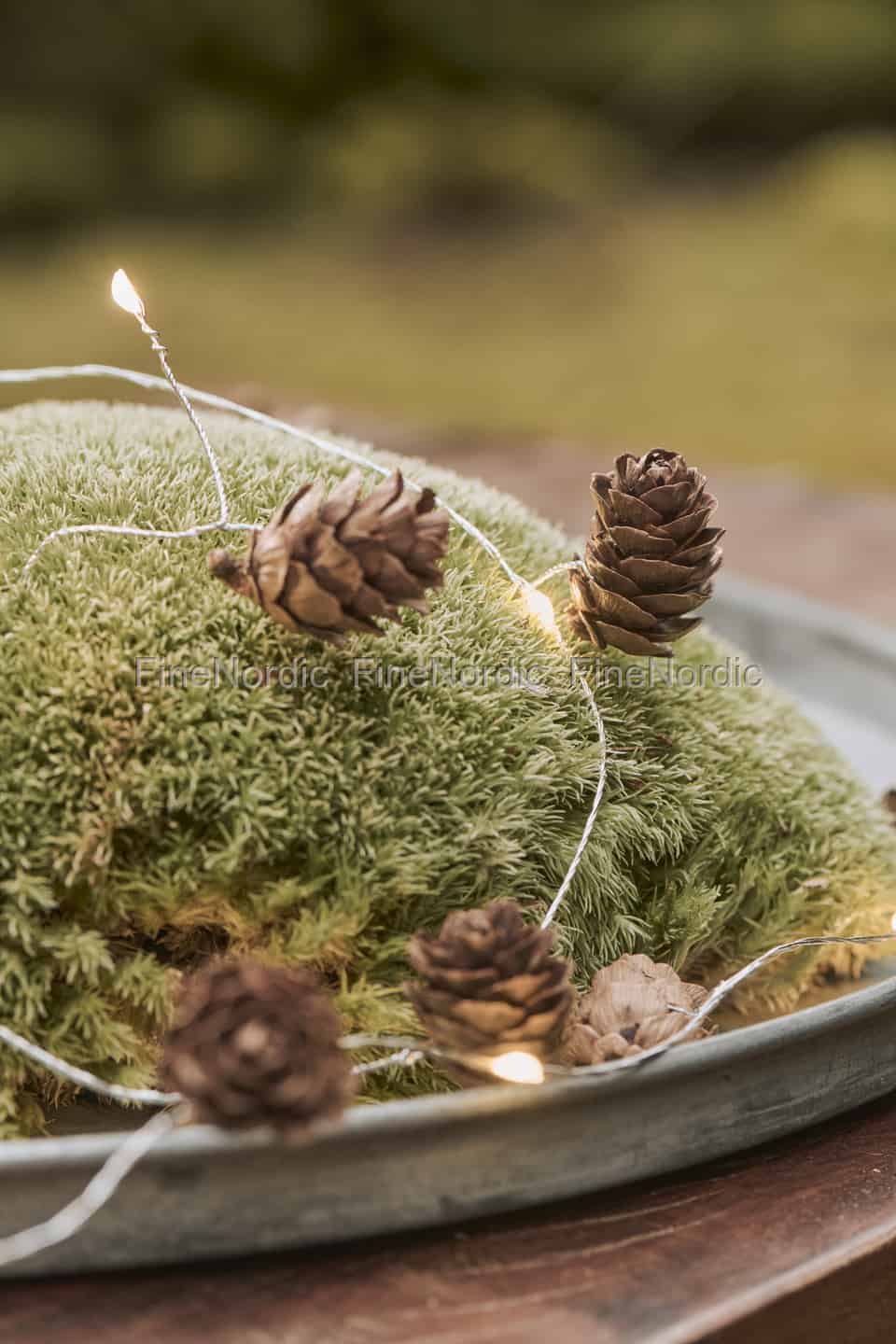 Laden Sie den stillen Charme eines skandinavischen Waldes in Ihr Zuhause ein. Diese zarte Lichterkette, geschmückt mit Miniatur-Tannenzapfen, verbreitet einen sanften, warmen Schein, der augenblicklich ein Gefühl von Hygge und Staunen in jeder Ecke erzeugt.