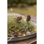 Entdecken Sie die schlichte Schönheit der Natur, die mit dieser reizenden Drahtlichterkette von Ib Laursen ins Haus geholt wird. Jede der zehn LED-Leuchten wird von einem perfekt geformten Miniatur-Tannenzapfen begleitet und bildet so eine zarte Girlande, die von friedlichen Waldspaziergängen und klarer Herbstluft erzählt. Der schlanke, biegsame Draht scheint fast zu verschwinden und hinterlässt nur die Illusion winziger, leuchtender Zapfen, die in Ihrer Dekoration schweben. Es ist ein subtiler Schmuck, der ein hohes Maß an Wärme und Charakter bietet.