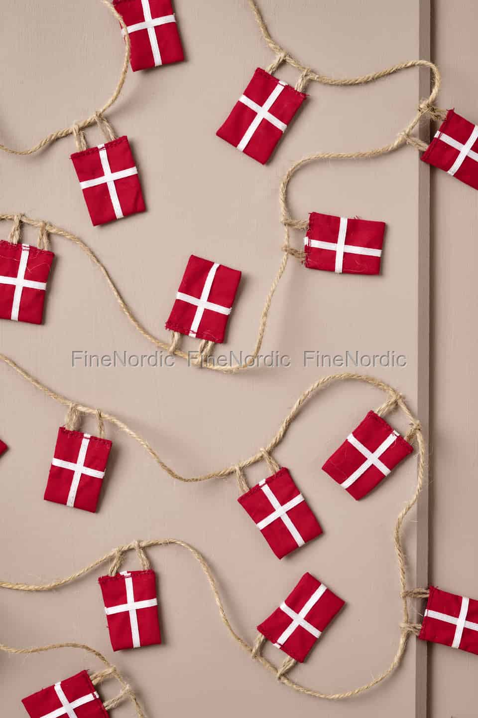 Stellen Sie sie sich vor, wie sie für eine Sommerparty über ein Gartentor gespannt ist, während der Festtage den Kaminsims schmückt oder als liebevolles Detail ein besonderes Geschenk umhüllt. Das sanfte Rot der Stoffflaggen vor dem Hintergrund der naturbelassenen Schnur erzeugt eine zarte, fröhliche Szenerie, die sofort einladend wirkt. Dies ist nicht nur eine Dekoration; es ist eine Einladung, Erinnerungen zu schaffen und die kleinen, glücklichen Momente des Lebens auf dänische Art zu zelebrieren.