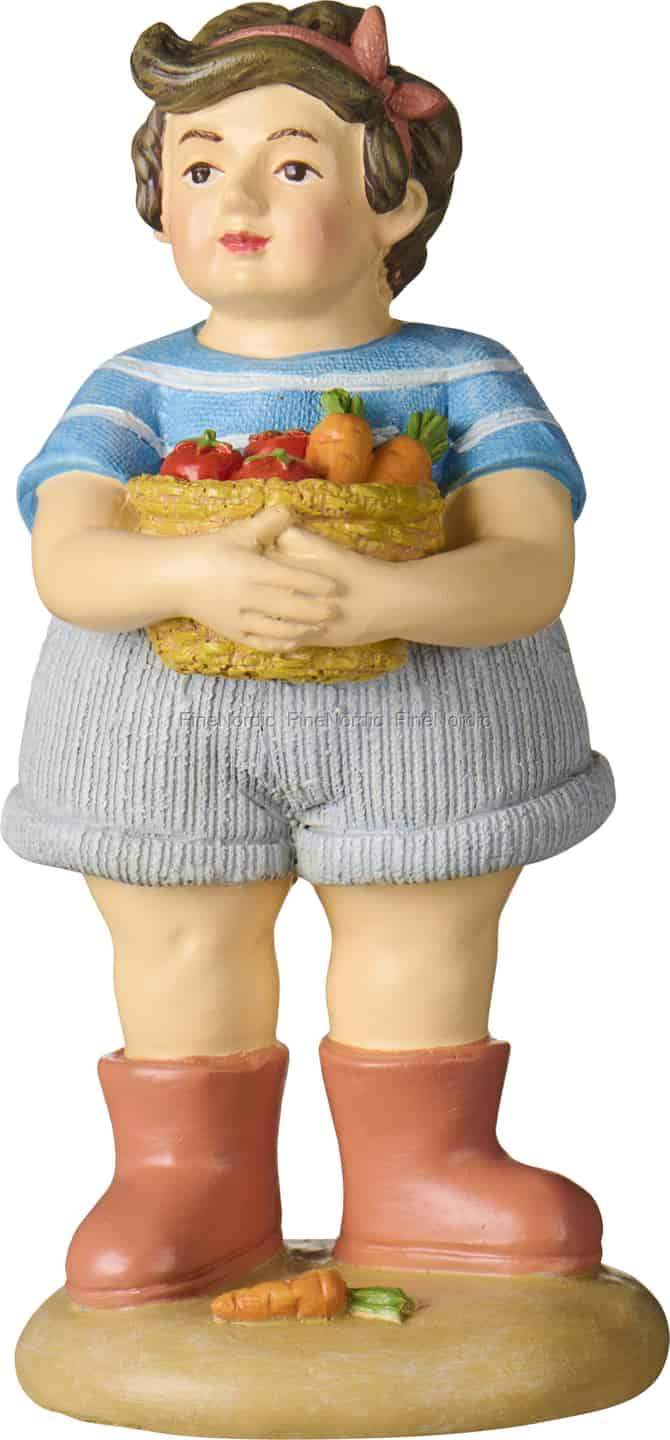 Stellen Sie sich einen sanften Nachmittag zwischen den Gemüsebeeten vor, während die Sonne Ihre Schultern wärmt. Diese liebenswerte Figur von Ib Laursen verkörpert dieses friedliche Gefühl und zelebriert die pure Freude, die eigene Ernte einzubringen. Mit rosigen Wangen und einem fest umklammerten Korb ist dieser kleine Gärtner ein Bild der Zufriedenheit und präsentiert stolz die Früchte seiner Arbeit – leuchtend rote Tomaten und süße, erdige Karotten. Die wunderbar texturierten Details, vom gestreiften T-Shirt bis zu den robusten Gummistiefeln, verleihen diesem Charakter ein ganz eigenes Leben und eine eigene Geschichte.