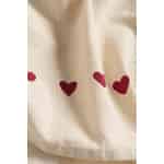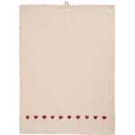 Bringen Sie mit dem Geschirrtuch Emma einen Hauch von Zuneigung in Ihre täglichen Küchenrituale. Gefertigt aus weicher, naturbelassener Baumwolle, besticht sein schlichtes Design durch eine zarte Reihe roter Herzen – eine leise Erinnerung an die Wärme, die in einem liebevoll geführten Zuhause zu finden ist.