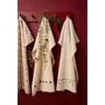 Der unaufdringliche Charme dieses Geschirrtuchs fügt sich das ganze Jahr über nahtlos in Ihr Zuhause ein, doch zur Weihnachtszeit erstrahlt es in besonderem Glanz. Stellen Sie es sich an einer Hakenleiste hängend vor, umgeben vom Duft von Lebkuchen und Tannengrün, während seine Erdtöne Ihre Weihnachtsdekoration ergänzen. Es ist mehr als nur ein Küchentuch; es ist ein kleines Stück skandinavischer Hygge, das Wärme und Charakter in Ihren Raum bringt.