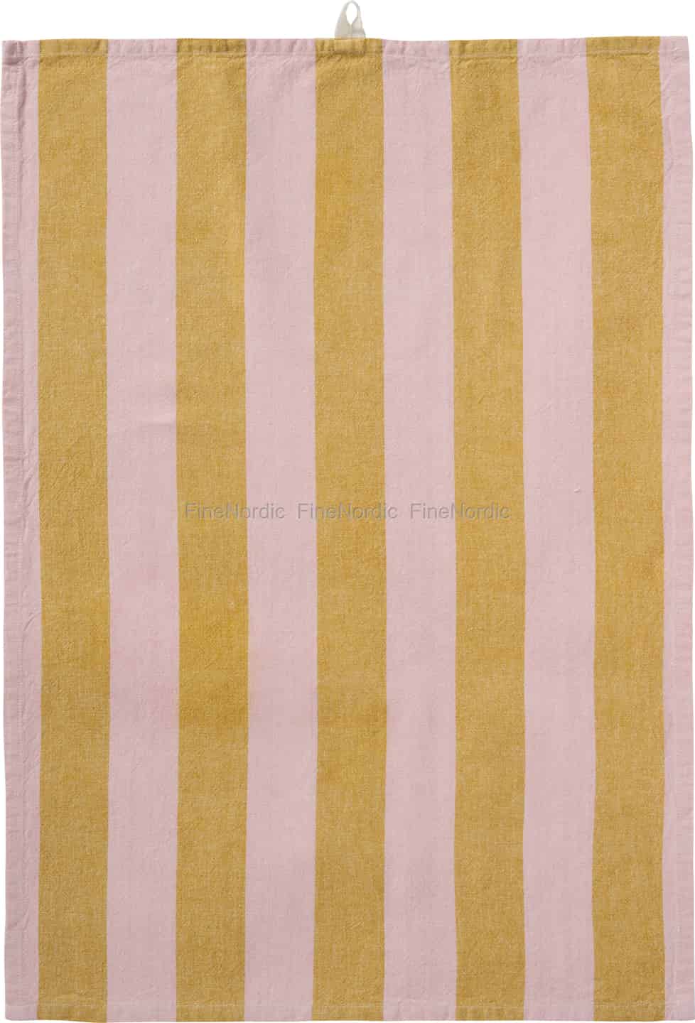 Entdecken Sie den schlichten Charme des Geschirrtuchs Linus von Ib Laursen, ein Stück, das die Essenz des skandinavischen Designs wunderschön einfängt. Sein fröhliches Muster aus breiten senfgelben und hellrosa Streifen wurde entworfen, um einen kleinen Sonnenstrahl in Ihr Zuhause zu bringen und Ihre täglichen Routinen zu erhellen. Die wunderbar griffige Qualität der reinen Baumwolle lädt dazu ein, es für alles zu verwenden, vom Abtrocknen Ihrer Lieblingstassen bis hin zum Auslegen eines Brotkorbs für den Wochenendbrunch.