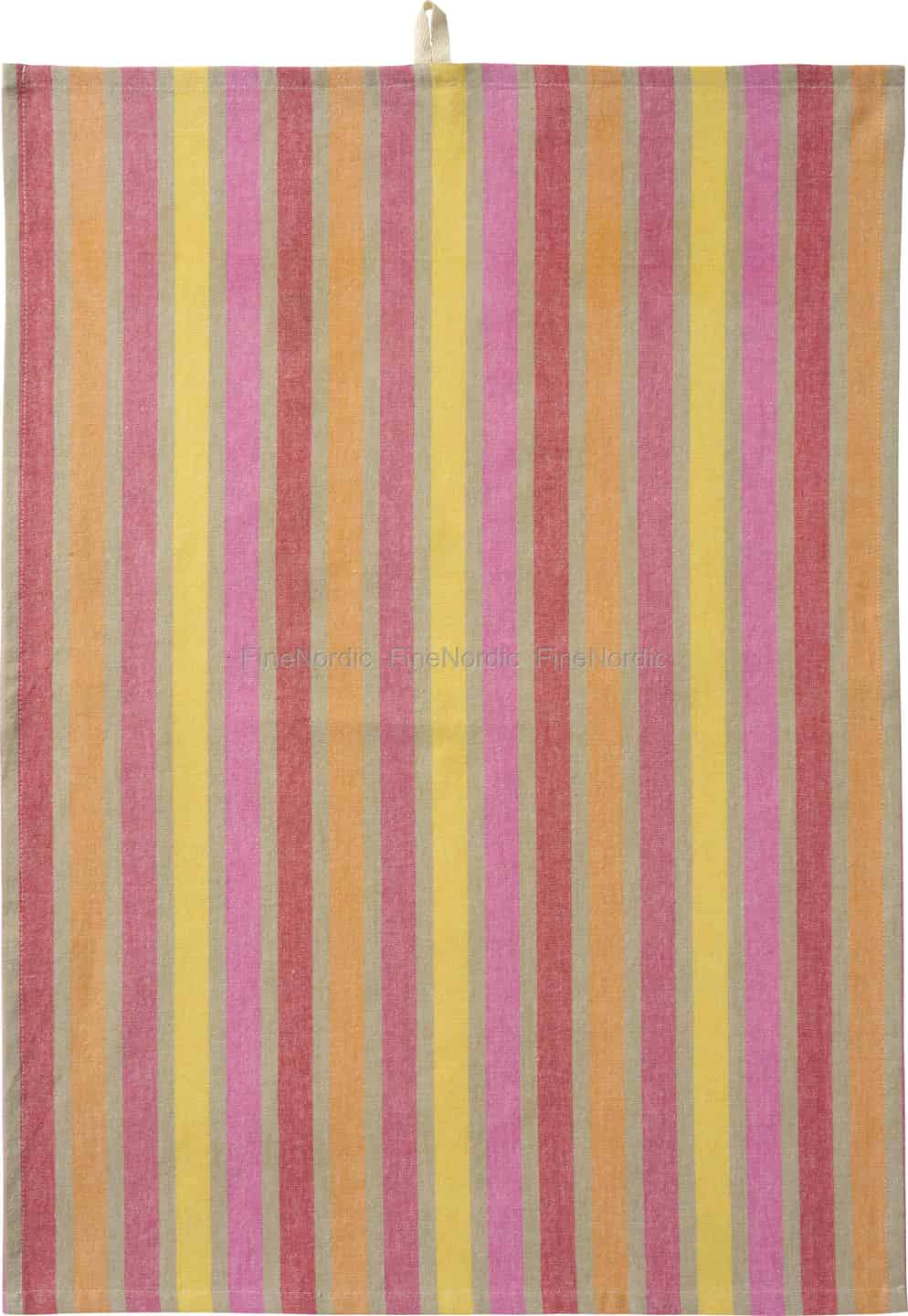 Jede Küche erzählt eine Geschichte, und mit diesem bezaubernden Geschirrtuch von Ib Laursen können Sie ein Kapitel voller Wärme und Farbe hinzufügen. Die entzückenden Streifen – die an Küstenhäuschen und Wildblumenwiesen erinnern – sind dazu gemacht, Ihnen ein Lächeln ins Gesicht zu zaubern, egal ob Sie Ihre Lieblingstasse abtrocknen oder einen Brotkorb für das Familienessen auslegen. Die Farbpalette aus warmen Rosatönen, sonnigem Gelb und sanftem Orange, abgesetzt gegen natürliches Beige, wirkt sowohl lebendig als auch beruhigend.
