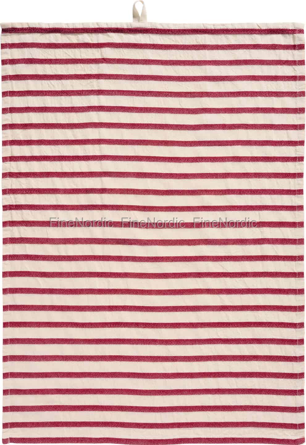 Stellen Sie sich den Duft von frisch gebackenem Lebkuchen vor, während Sie Ihrer Küche den letzten festlichen Schliff verleihen. Das Geschirrtuch Olga mit seinen klassischen roten Streifen auf naturfarbener, gewebter Baumwolle bringt einen Hauch zeitloser skandinavischer Tradition in Ihr Zuhause.
