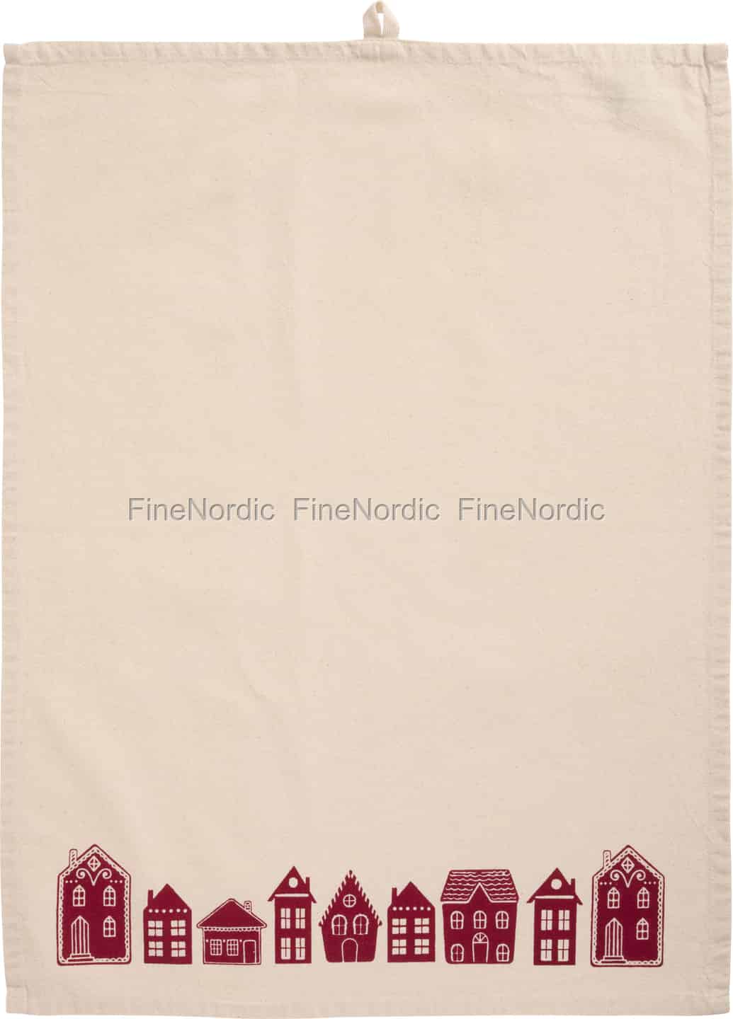 Stellen Sie sich den Duft von Lebkuchengewürzen vor, der Ihre Küche erfüllt. Das Geschirrtuch Sally von Ib Laursen fängt dieses behagliche Gefühl mit seiner bezaubernden Reihe festlicher roter Häuser ein und verleiht Ihren täglichen Aufgaben einen Hauch skandinavischen Winterzaubers.