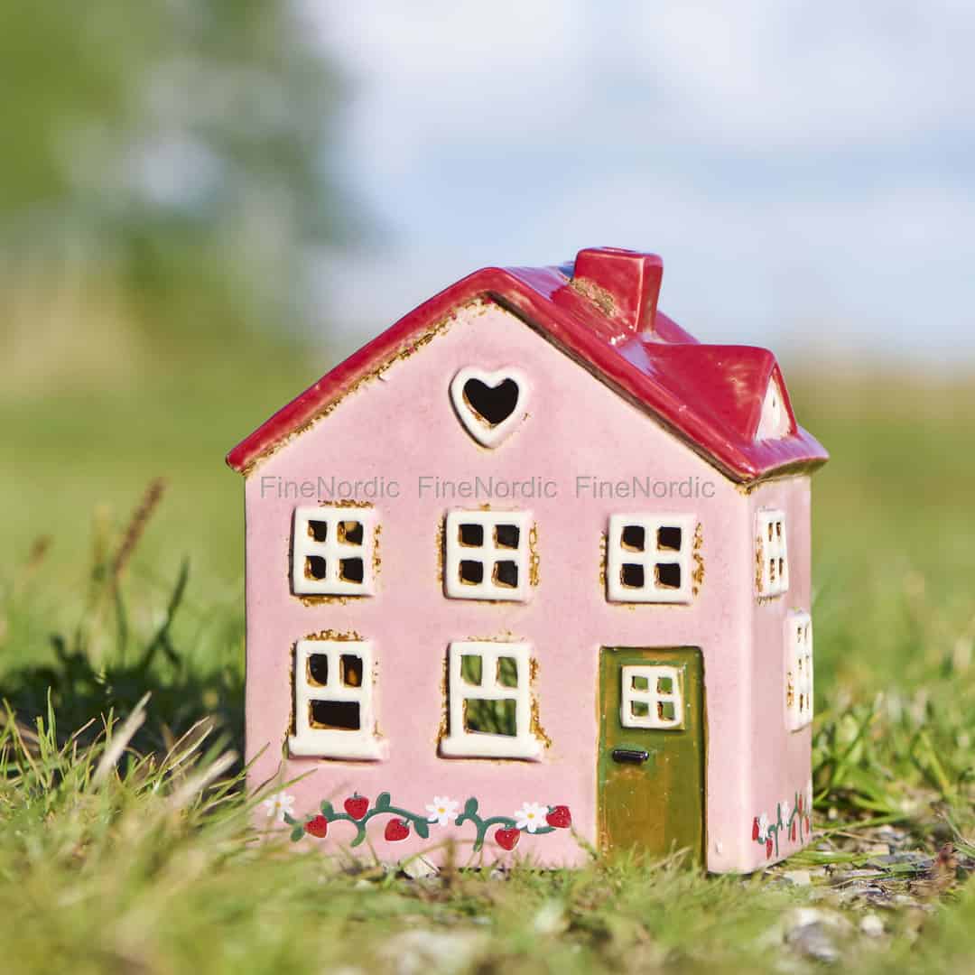 Inspiriert von den idyllischen Sommerhäusern der dänischen Stadt Ebeltoft, ist dieses wunderschöne Teelichthaus von Ib Laursen ein kleines Stück skandinavischen Charms. Die zartrosa Fassade, das glänzend rote Dach und die einladende grüne Tür wecken Erinnerungen an lange, sonnige Tage und friedliche Abende. Jedes Detail, vom herzförmigen Fenster im Giebel bis zur handgemalten Erdbeerranke am Sockel, ist darauf ausgelegt, zu erfreuen und ein Gefühl von schlichter, ländlicher Freude zu wecken.