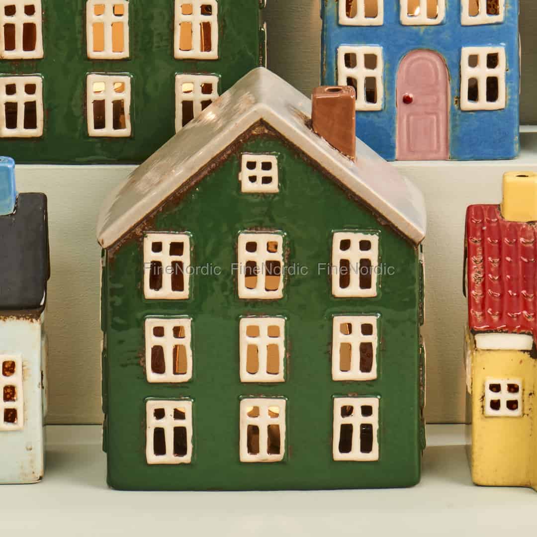 Inspiriert von den farbenfrohen Stadthäusern am Kopenhagener Hafen Nyhavn, bringt dieses bezaubernde Keramikhaus einen Hauch dänischer Hygge in jeden Raum. Wenn ein Teelicht darin platziert wird, flackert ein sanftes, einladendes Licht durch seine Fenster und schafft eine Atmosphäre purer Gemütlichkeit.