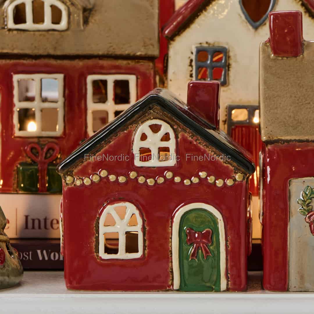 Treten Sie ein in eine Welt der Miniaturwunder mit dem „Stillenat“-Teelichthaus von Ib Laursen. Jedes Detail, von der glänzend roten Fassade und der festlichen Schleife an der tiefgrünen Tür bis hin zur bezaubernden Lichterkette, ist darauf ausgelegt, ein Gefühl von Nostalgie und winterlicher Behaglichkeit zu wecken. Die reiche, kracklierte Glasur verleiht eine Schicht rustikaler Authentizität und sorgt dafür, dass kein Haus dem anderen gleicht. Wenn es von innen durch das sanfte Flackern eines Teelichts beleuchtet wird, verwandelt es sich in ein Leuchtfeuer der Wärme, das ein sanftes, einladendes Licht durch seine winzigen Fenster wirft.