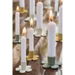 Stellen Sie sich vor, wie diese kleinen Blumen Ihren Esstisch schmücken und jede mit einer flackernden Flamme eine zauberhafte Atmosphäre für ein gemütliches Abendessen schafft. Oder stellen Sie sich ein Trio auf einer Fensterbank vor, dessen sanftes Licht den Abend begrüßt. Aufgrund ihrer zierlichen Größe laden sie dazu ein, mit Arrangements zu spielen, Farben zu mischen und Ihre ganz eigene, einzigartige Dekoration zu kreieren. Dies ist nicht nur ein Kerzenhalter; es ist eine Einladung, innezuhalten und die kleinen, schönen Momente zu schätzen, die ein Haus zu einem Zuhause machen.