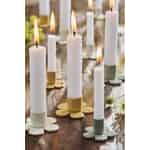 Arrangieren Sie einen einzelnen Halter auf einer Fensterbank, einem Nachttisch oder eingebettet in einem Regal zwischen Ihren Lieblingsbüchern. Für eine wahrhaft fesselnde Darstellung sammeln Sie mehrere in verschiedenen Farben auf einem Tablett oder entlang Ihres Esstisches, so wie Sie es mit einem Strauß frischer Blumen tun würden. Sie sind perfekt, um Feierlichkeiten mit schmalen Geburtstagskerzen zu begehen oder einfach nur, um Ihren täglichen Ritualen eine Prise Hygge zu verleihen.