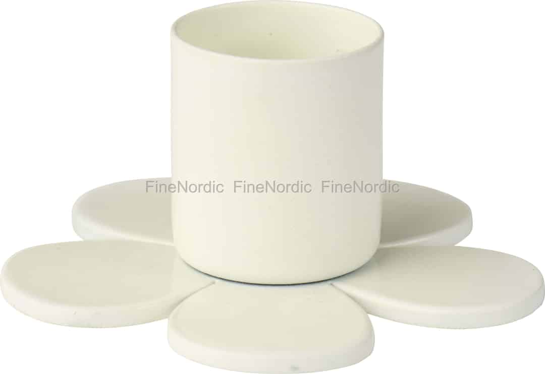 Stellen Sie sich eine Sammlung dieser kleinen Blüten vor, die für ein besonderes Essen auf Ihrem Esstisch verstreut sind, oder ein einzelnes Exemplar, das auf einem Stapel Bücher platziert ist, um eine gemütliche Leseecke zu schaffen. Mit nur 2,9 cm Höhe ist sein niedriges Profil perfekt, um Lichtebenen zu schaffen, ohne den Raum zu überladen. Er ist mehr als nur ein Halter; er ist eine Einladung, innezuhalten, eine Kerze anzuzünden und einen Moment reiner Hygge zu genießen.