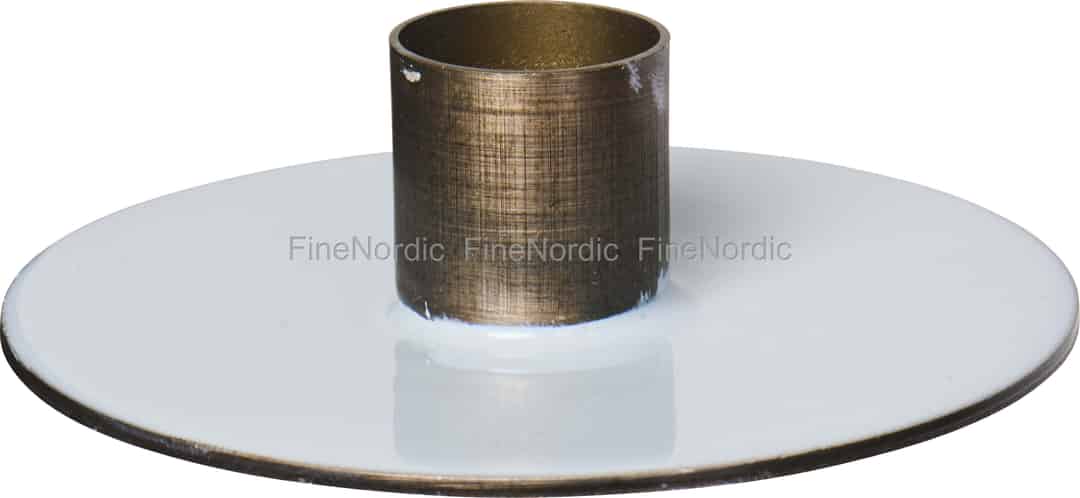 Entdecken Sie die stille Schönheit des skandinavischen Designs mit diesem eleganten Kerzenhalter von Ib Laursen. Er zelebriert die schlichte Freude einer einzelnen Flamme und bietet die perfekte Grundlage für Ihre liebste Tafel- oder Stabkerze. Die kühle, glänzende Oberfläche des hellblauen Emaille-Sockels erinnert an die Ruhe eines nordischen Himmels, und ihre spiegelnde Eigenschaft erzeugt ein faszinierendes Spiel des Lichts. Dieses glatte Finish wird perfekt durch die warme, strukturierte Halterung ausbalanciert, die das edle Aussehen von antikem Messing hat und der minimalistischen Form eine Schicht von Geschichte und Charakter verleiht.