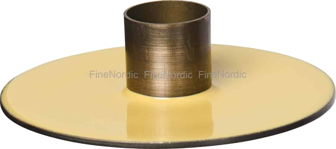 Entdecken Sie die unaufdringliche Schönheit dieses Kerzenhalters von Ib Laursen, bei dem schlichtes Design auf durchdachte Details trifft. Die glatte, glänzende Emaille des hellgelben Sockels wirkt wie ein eingefangener Sonnenstrahl und bildet einen reizvollen Kontrast zur warmen, gebürsteten Oberfläche des mittigen Metallhalters. Es ist ein Stück, das nicht nach Aufmerksamkeit verlangt, sondern vielmehr eine leise Einladung ausspricht, innezuhalten und die ruhigen Momente zu genießen. Seine minimalistische Form ist eine Hommage an das klassische skandinavische Design und sorgt dafür, dass er sich in jeder Umgebung zu Hause fühlt.