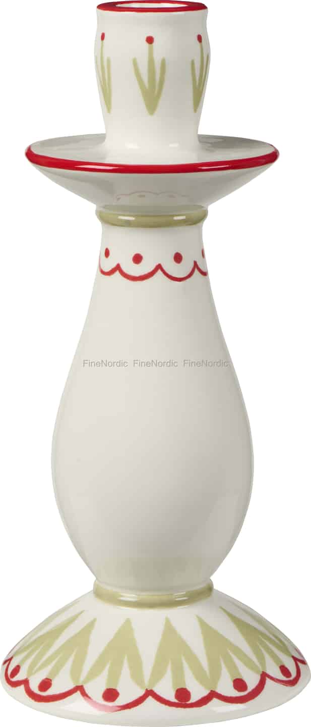 Tauchen Sie mit diesem wunderschönen Keramik-Kerzenhalter von Ib Laursen in das Herz der skandinavischen Tradition ein. Seine cremeweiße Glasur bietet die perfekte Leinwand für die bezaubernden, handgemalten Motive, die seine Oberfläche schmücken. Zarte grüne Blätter und festlich rote Wellenkanten wecken das Gefühl eines geschätzten Erbstücks, eines Stücks, das eine Geschichte von gemütlichen Winterabenden und fröhlichen Zusammenkünften erzählt. Die glänzende Oberfläche fängt das Licht wunderschön ein und unterstreicht die schlichte Eleganz seiner klassischen Silhouette.