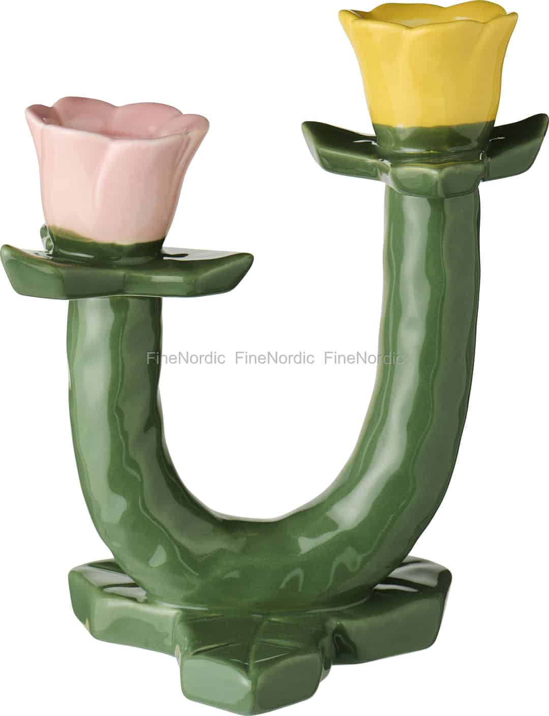 Entdecken Sie die einfache Freude eines blühenden Gartens mit diesem wunderbar fantasievollen Kerzenhalter von Ib Laursen wieder. Seine skulpturale Form, die an einen stolzen Tulpenstiel erinnert, bringt eine organische und verspielte Energie in Ihren Wohnraum. Die glänzend grüne Keramik fängt das Licht wunderschön ein und bildet eine lebendige Basis für die beiden zarten Blütenkelche – einer in zartrosa, der andere in einem fröhlichen Gelb –, die darauf warten, Ihre Lieblingsstabkerzen zu halten. Es ist ein Stück, das eine Geschichte von Neuanfängen und sonnigen Nachmittagen erzählt.