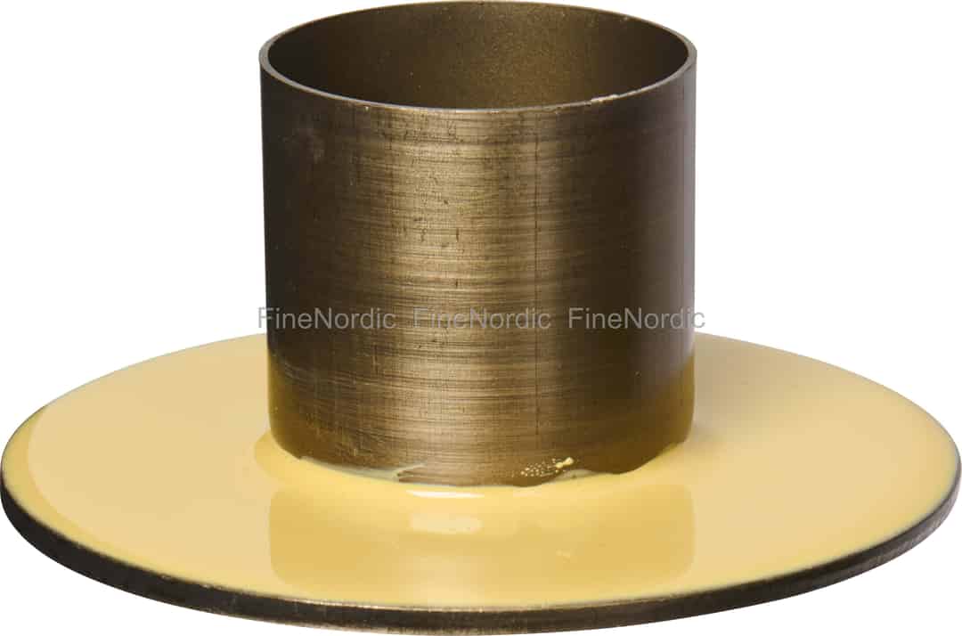 Genießen Sie die einfachen Freuden des Lebens mit diesem bezaubernden Kerzenhalter von Ib Laursen, einem Stück, das die Essenz des skandinavischen Designs einfängt. Er ist eine Feier der Kontraste: Der glatte, glänzende Sockel im Emaille-Stil in einem hoffnungsvollen Hellgelb sitzt unter einem wunderschön texturierten Becher mit einem gealterten Messing-Finish. Diese durchdachte Kombination von Oberflächen verleiht dem Halter eine einzigartige Persönlichkeit, die sich sowohl zeitgemäß als auch zeitlos anfühlt. Er ist nicht nur dafür gemacht, eine Kerze zu halten, sondern eine Flamme zu wiegen und jede kleine Ecke Ihres Zuhauses in einen Zufluchtsort der Ruhe zu verwandeln.