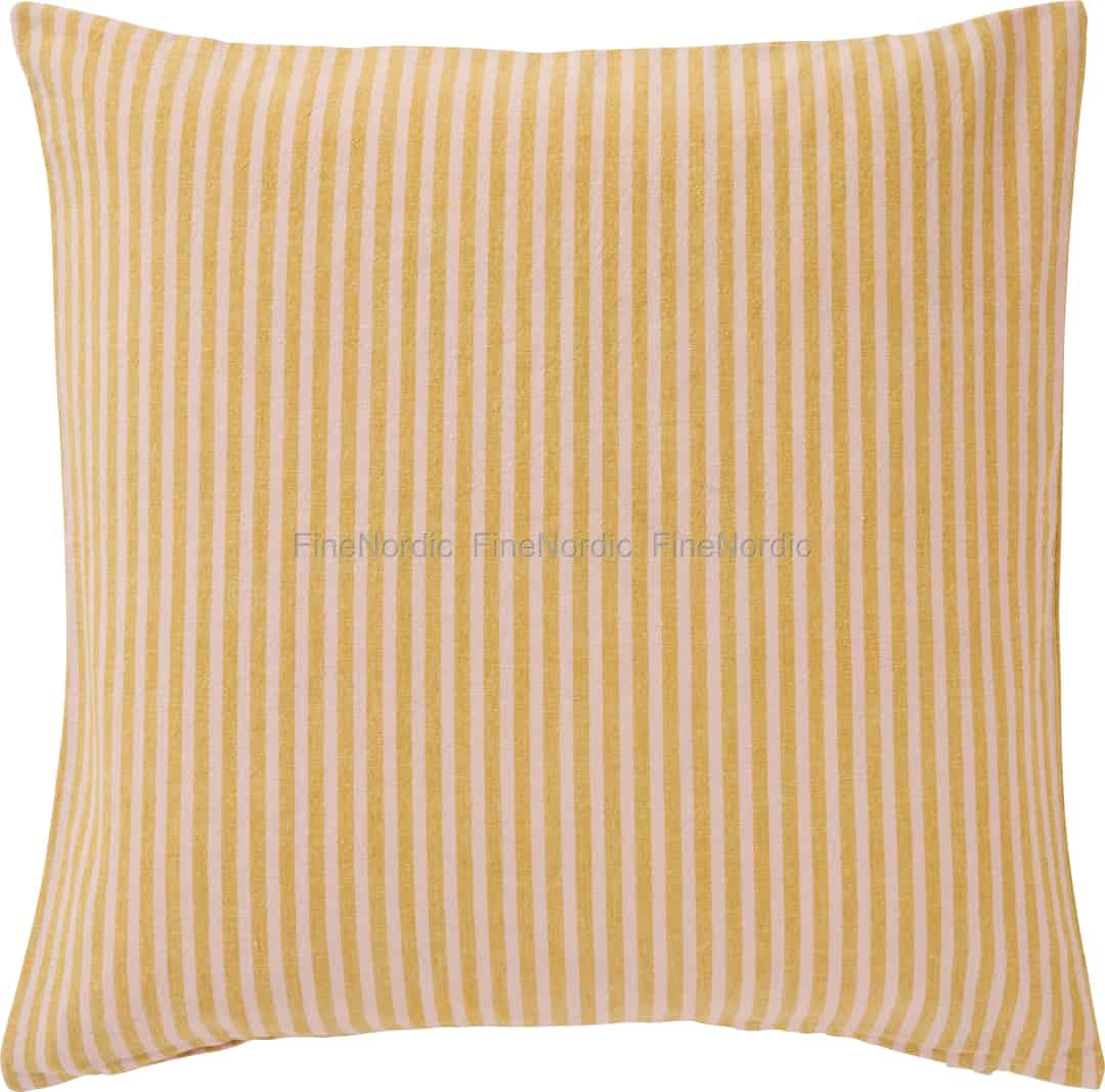 Stellen Sie sich den sanften Schein eines späten Sommernachmittags vor, der lange Schatten in Ihrem Garten wirft. Die Kissenhülle Linea fängt mit ihren zarten Streifen in warmem Senfgelb und feinem Rosa genau dieses Gefühl ein und bringt eine schlichte, wunderschöne Wärme in Ihr Zuhause.