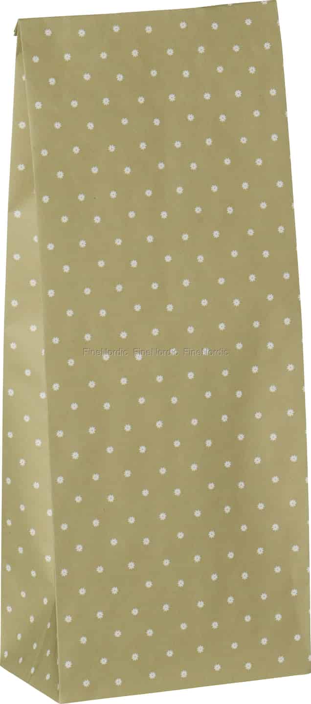 Präsentieren Sie Ihre Geschenke mit dem schlichten, herzlichen Stil der dänischen Landschaft. Diese bezaubernde Papiertüte von Ib Laursen mit ihrem zarten Gänseblümchen-Aufdruck auf sanftem Olivgrün verwandelt jede kleine Aufmerksamkeit in eine ganz besondere Geste.