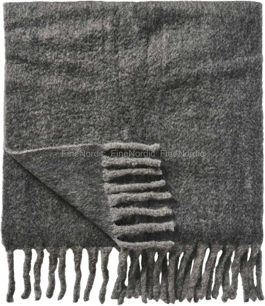 Ib Laursen Plaid - Anthrazit - "Melange" - Hellgraue Fransen 130 x 170 cm