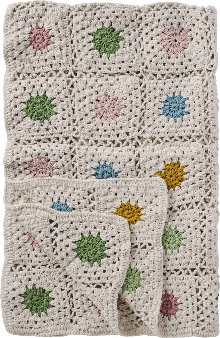 Ib Laursen Plaid - Gehäkelt - Creme - Mehrfarbige Blumen 130 x 170 cm