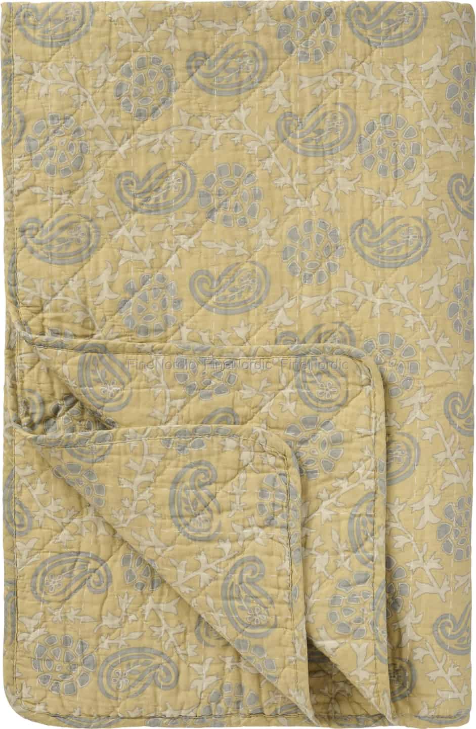 Stellen Sie sich vor, wie das sanfte Licht eines späten Nachmittags die zarten Gelbtöne dieses wunderschönen Quilts einfängt. Gefertigt aus reiner Baumwolle, lädt sein feines Paisley- und Blumenmuster in sanftem Grau und Cremeweiß dazu ein, zur Ruhe zu kommen und Geborgenheit zu finden.