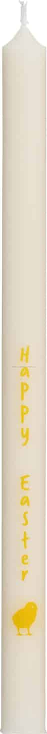 Begrüßen Sie die helleren Tage des Frühlings mit einem Hauch von schlichtem Charme. Diese entzückende schmale Kerze von Ib Laursen bringt ein warmes, sanftes Licht in Ihr Zuhause und trägt eine fröhliche Osterbotschaft auf ihrer glatten, cremefarbenen Oberfläche.