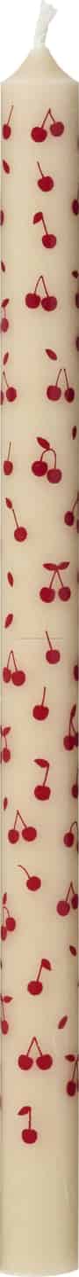 Stellen Sie sich vor, wie das sanfte Flackern des Kerzenlichts über Ihren Tisch tanzt und ein Muster aus süßen, rubinroten Kirschen zum Vorschein bringt. Diese entzückende schmale Kerze von Ib Laursen verleiht jedem Raum einen Hauch nostalgischer Fröhlichkeit und verwandelt schlichte Augenblicke in kostbare Erinnerungen.