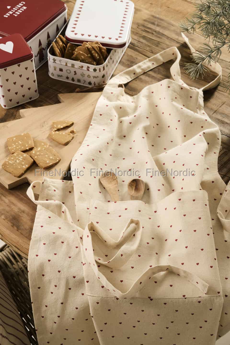 Die Valentin-Schürze fängt die schlichte, herzliche Essenz des skandinavischen Lebensgefühls ein. Ihr naturfarbener Baumwollstoff ist mit winzigen roten Herzen übersät – eine leise Anspielung auf die Liebe, die in jedem Rezept steckt. Dies ist nicht nur eine Schürze; es ist ein Stück alltäglicher Charme, von Ib Laursen entworfen, um einen Hauch dänischer Hygge in Ihre Küche zu bringen. Das klassische Design mit seinen einfachen Bändern und der praktischen Vordertasche wirkt zeitlos und überaus einladend und lädt Sie dazu ein, zu entschleunigen und den Moment zu genießen.