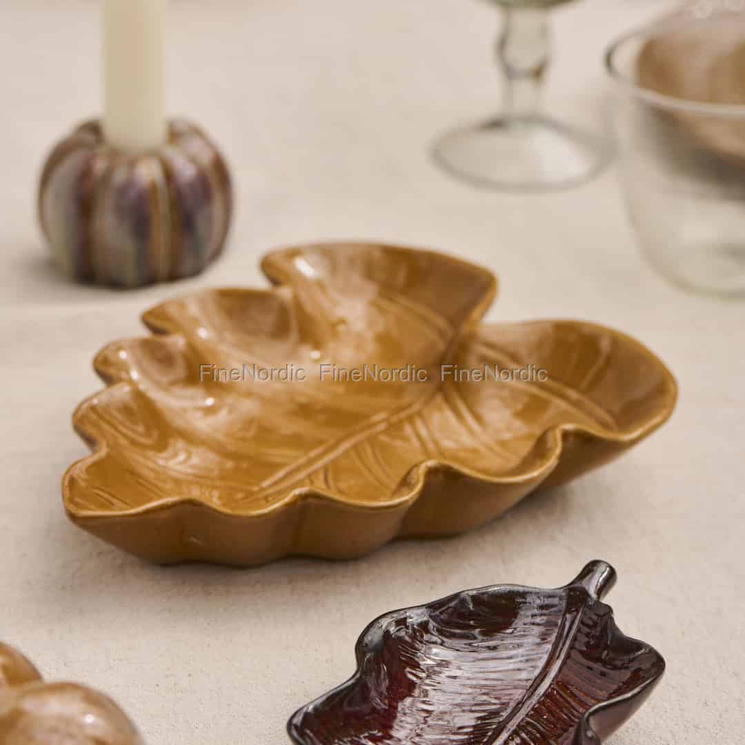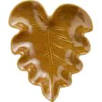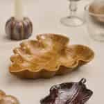 Diese von Ib Laursen gefertigte, wunderschöne Keramikschüssel ist eine stille Hommage an die einfachen Formen der Natur. Ihre großzügige Blattform ist mit einer warmen, senfbraunen Glasur veredelt, die mit einem einladenden Schimmer leuchtet – erinnernd an das Licht der goldenen Stunde, das durch einen Herbstwald fällt. Die fein geprägten Blattadern fügen eine zusätzliche Textur hinzu und machen sie zu einem Stück, das sich so schön anfühlt, wie es aussieht. Es ist eine wundervolle Art, einen Hauch von Natur in Ihr persönliches Refugium zu bringen und ein Gefühl von Ruhe und Verbundenheit zu schaffen.