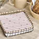 Ob Sie den Tisch für einen ruhigen Morgenkaffee, ein lebhaftes Familienessen oder ein zwangloses Abendessen mit Freunden decken, dieser Halter sorgt dafür, dass Ihre Servietten immer mit Anmut präsentiert werden. Seine Struktur hält sie ordentlich gestapelt und in Reichweite, während seine rustikale Ästhetik eine breite Palette von Geschirr ergänzt, von schlichtem weißem Porzellan bis hin zu farbenfroher gemusterter Keramik. Lassen Sie ihn zu einem dauerhaften, charmanten Element auf Ihrer Arbeitsplatte oder Ihrem Esstisch werden, eine leise Erinnerung an die Schönheit in der alltäglichen Ordnung.